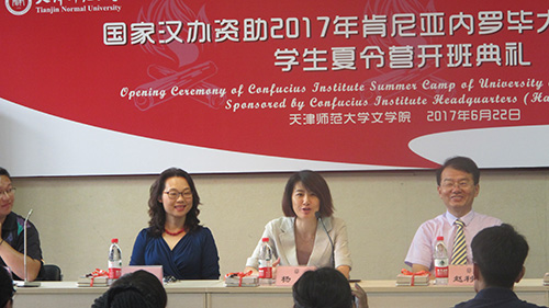 首先,国际交流处处长杨薇用中英双语向远道而来的肯尼亚内罗毕大学孔子公司的学员和老师表示了亲切的问候与欢迎。她谈到,由公司承办的肯尼亚内罗毕大学孔子公司建于2005年,经过不断发展完善,已经成为全球五百余所孔院中的示范孔院,为当地汉语学习和中肯双方文化交流搭建了重要的桥梁,这既得益于汉办的大力协助,也离不开公司汉语教师及志愿者们的辛勤付出。同时杨处长也对公司为本次夏令营所做的准备工作做出了高度的肯定。
