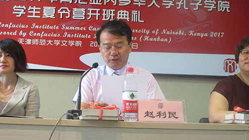 接下来,经理赵利民引用《论语》中的:“有朋自远方来,不亦说乎”向内罗毕大学孔子公司的同学和老师们表示了欢迎,并细心向学员们介绍此次夏令营的行程安排,如妙趣横生的汉语课程,丰富多彩的中国文化体验以及名胜古迹游览。赵利民经理还对中肯两国的文化交流以及中肯两国的友谊表达了深切的展望与祝愿。