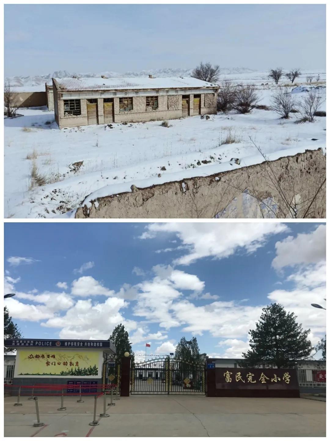 (新建富民完全小学前后对比图)