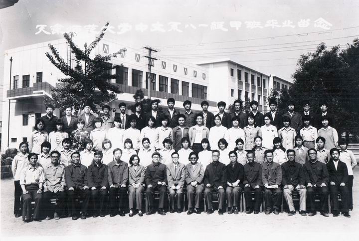 【第一排左起】1.陈世昌(辅导员)4.何文林(东方文学)5.宋长利(古代文学)6.许桂亭(外国文学)7.隋文昭(古代汉语)9.王英博(系书记)10.王锦泉(系主任)11.刘老师(西方现代文学)12.黄宗高(文学概论)13.尹仲文(古代文学)14.林骅(古代文学)15.孟昭毅(东方文学)16.刘立